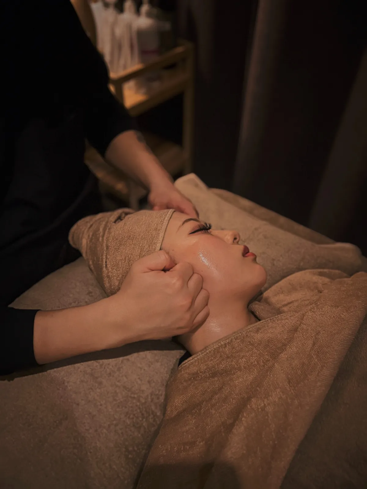首肩のコリも同時に癒せる、当店自慢の贅沢小顔フルコースです。